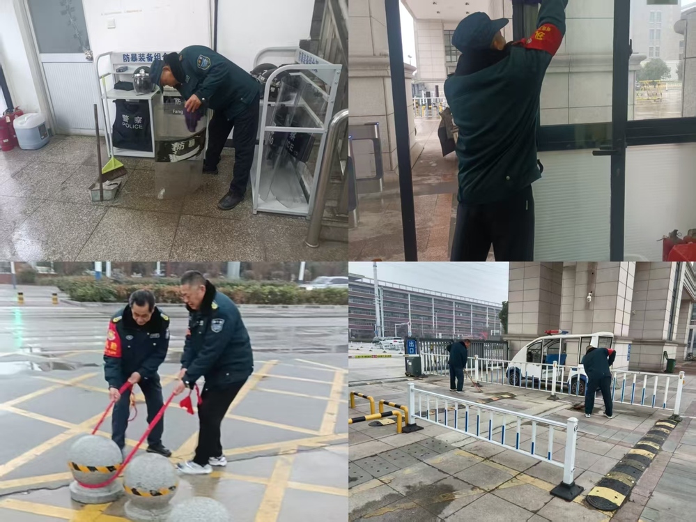 2月28日前,安全管理处组织全体工作人员对责任区域开展全面秩序规范行动。大家分工协作、干劲十足,对监控室、警务站、值班室、各校门岗亭及校门口周边区域进行了彻底清扫和整理。擦拭门窗玻璃、整理物品摆放、清除卫生死角、清洗地面污渍,经过两天的集中清理,各值班点位窗明几净、物品有序、环境整洁,所有保安员着规范制服,以崭新的面貌迎接师生返校。