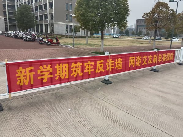 开学季是电信网络诈骗高发期,为切实提高新生及返校学生防骗意识,安全管理处提前谋划,多措并举开展新学期反诈宣传。一是线上推送,通过大学生安全委员会微信公众号等平台,持续推送“开学反诈第一课”系列推文,剖析刷单、二手交易、游戏充值等常见骗局;二是横幅警示,在校园主干道、宿舍区、食堂等人流密集区域悬挂反诈横幅4条,用朗朗上口的标语时刻提醒师生;三是广播提醒,利用巡逻车小喇叭,在返校高峰期循环播放反诈提示语音,让防骗知识“声”入人心。