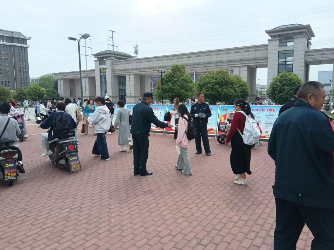 4月16日上午,学校安保人员在笃行楼前开展国家安全知识线下宣传活动,面向过往师生发放主题普法知识手册,发挥学校安保队伍扎根一线、贴近师生的优势,将国家安全知识送到师生手中,让师生深刻认识到“国家安全无小事,人人都是参与者”,有效提升了广大师生对总体国家安全观的认知度和参与度,进一步夯实了校园安全稳定的思想基础。